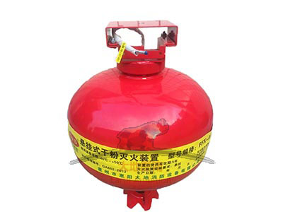粉罐内充装ABC超细干粉灭火剂,火灾发生时。经启动器启动,气体发生器产生的高压气体将喷口密封片爆破,灭火剂随高压气体一起由喷出,进行灭火。
